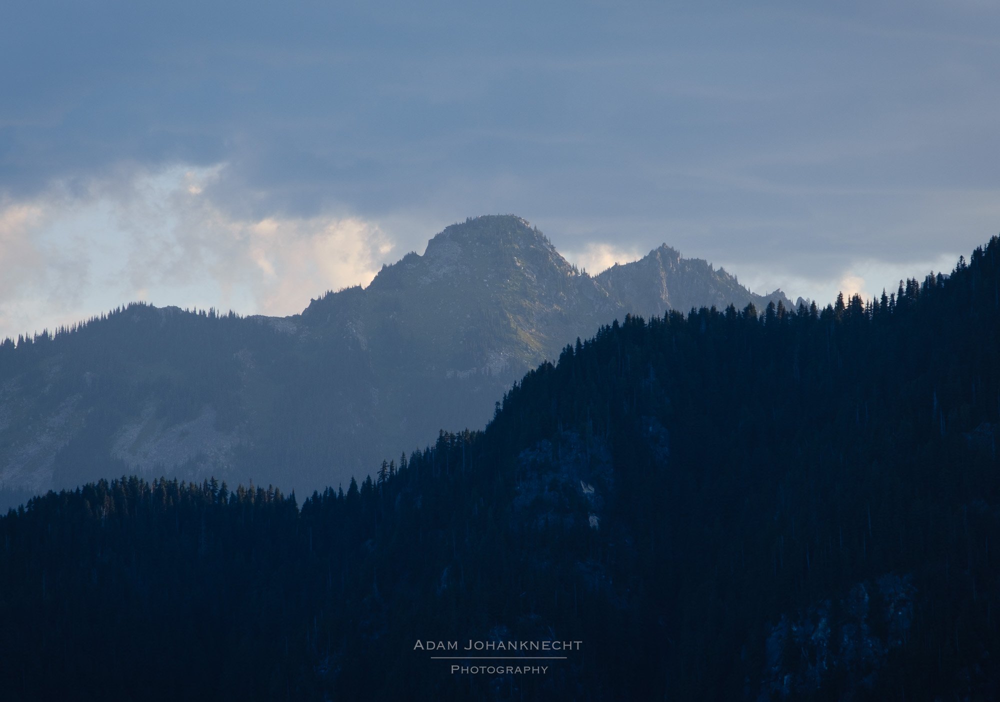 I made it to camp at Mica Lake, one of the prettiest lakes I had seen in Washington. You’ll see an image from the lake soon, but that evening I took one last picture looking north, of the sunset illuminating the glaciers on a mountain.